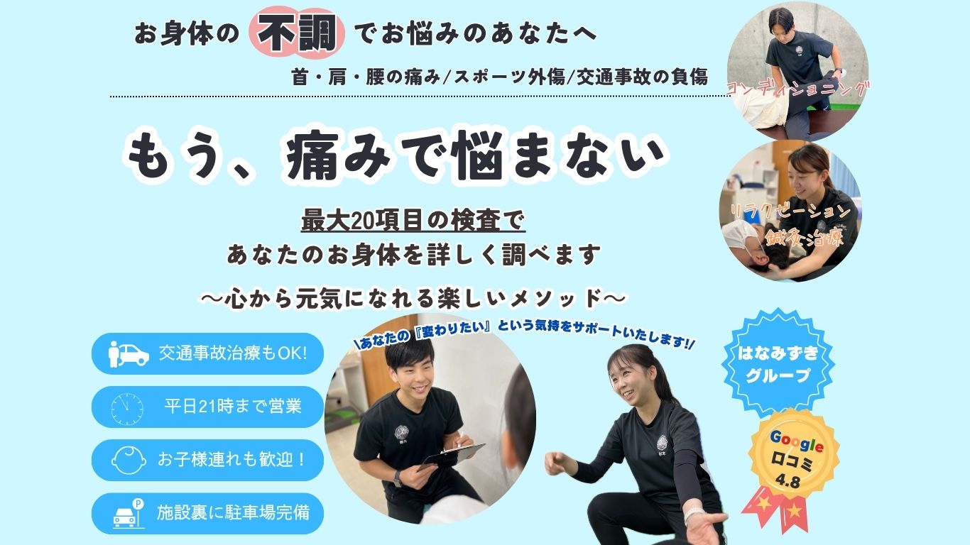 はなみずきグループでは各部門が協力し合って患者さまの怪我からの復帰や身体の不調改善に取り組んでいます。