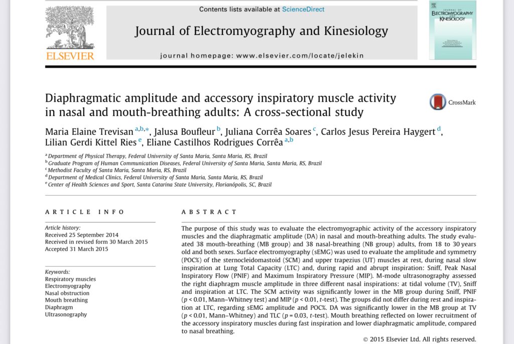口呼吸および鼻呼吸成人において、補助吸気筋の電気活動と、横隔膜運動の振幅を評価することを目的としています。